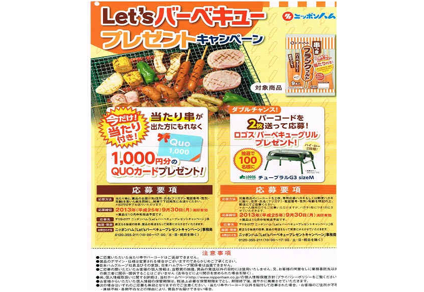 ニッポンハム「Let’s バーベキュープレゼントキャンペーン」