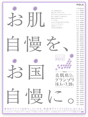 ポーラが長年にわたって取得した1,380万件(2013年1月時点)を超える肌データを活用するとともに、地域性を加味した「美肌県」という切り口を設けることで、