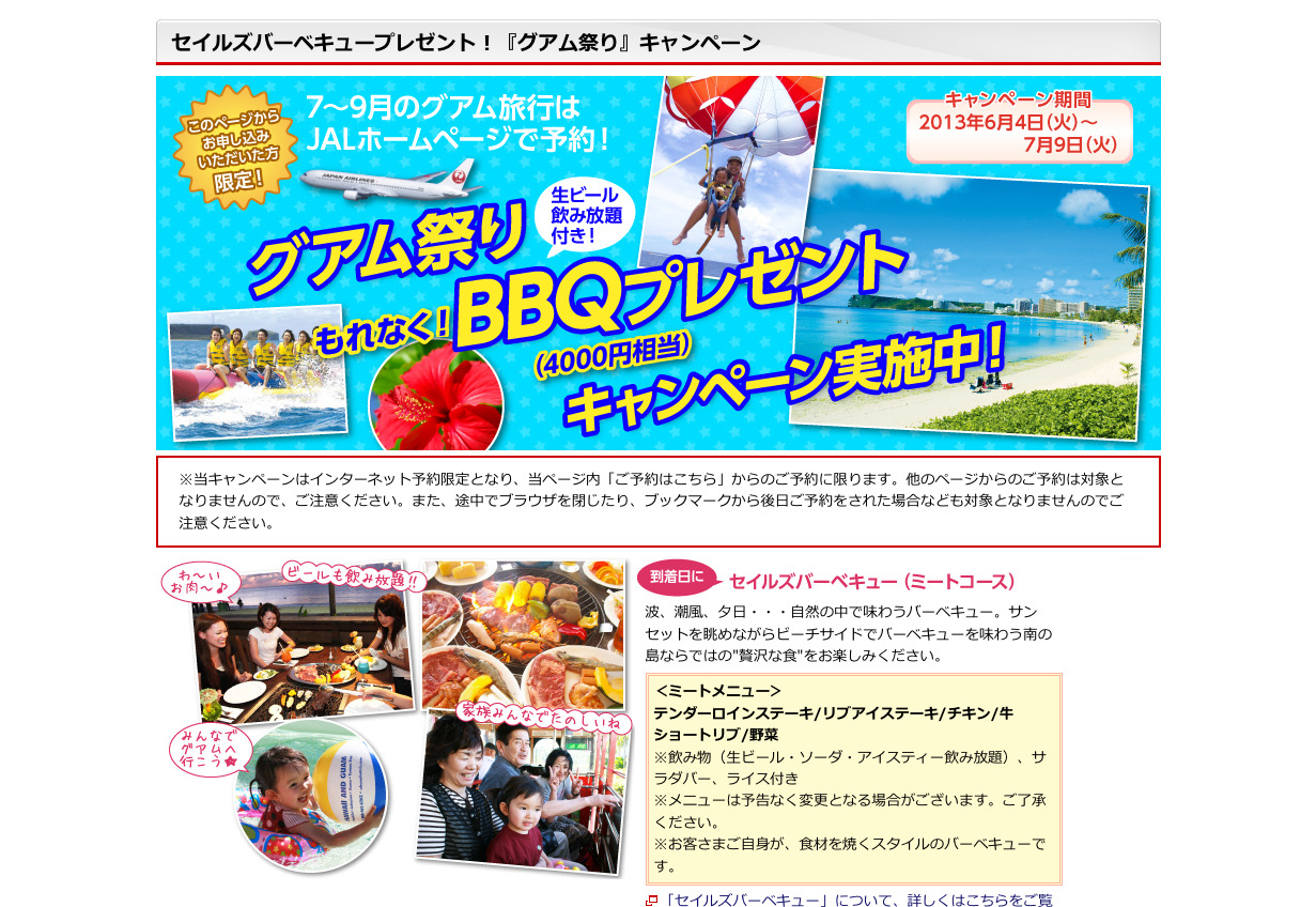 JAL「セイルズバーベキュープレゼント!グアム祭り」